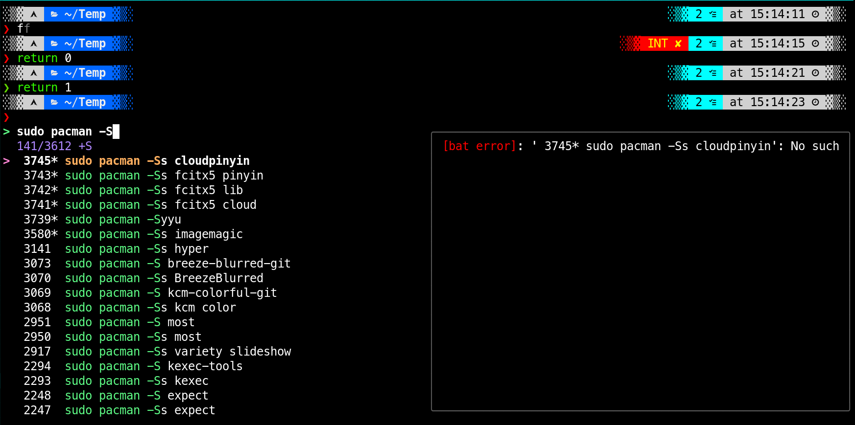 然后我在命令历史里搜索 sync package 就能匹配到这条历史记录。